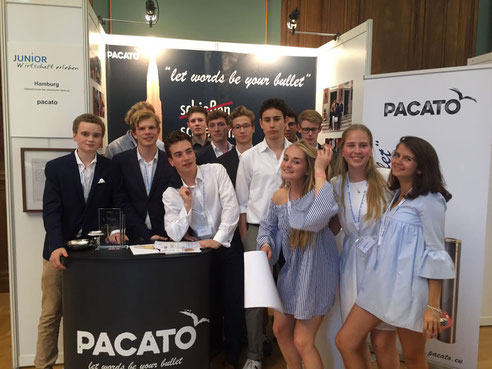 Wir haben es geschafft! Am Mittwoch, dem 3. Mai, ist es uns gelungen, den 1. Platz beim Hamburger Landeswettbewerb der IW Junior GmbH zu belegen und uns somit für den bundesweiten Wettbewerb in Berlin zu qualifizieren. Wir sind sehr stolz, dass unsere Firma und unser Produkt mit einer solchen Ehre gewürdigt wurde und sind optimistisch, beim bundesweiten Wettbewerb in Berlin gute Chancen auf eine vordere Platzierung zu haben. Nun heißt es also: Auf nach Berlin!